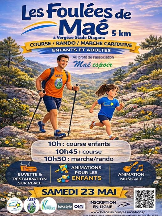 Le samedi 23 mai au Stade Diagana à Vergèze, venez participer aux Foulées de Maé, une journée sportive, familiale et solidaire ouverte à