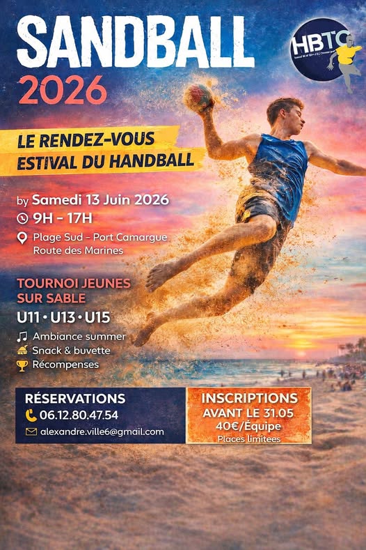 13jui9h0017h00Sandball 2026Tournoi Jeunes sur sable U11-U13-U15