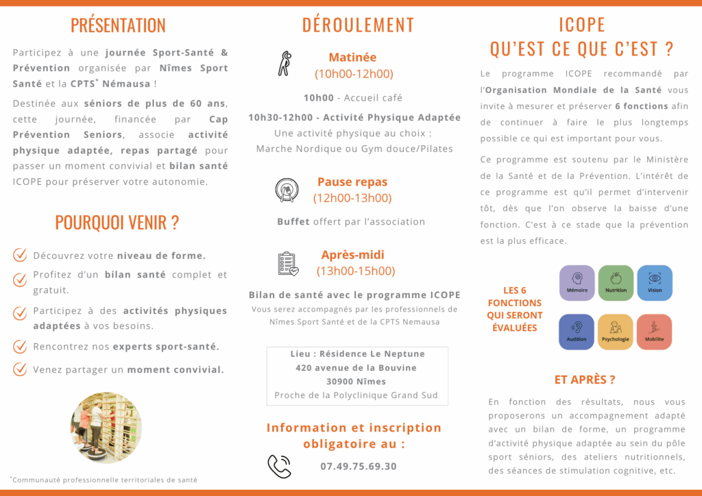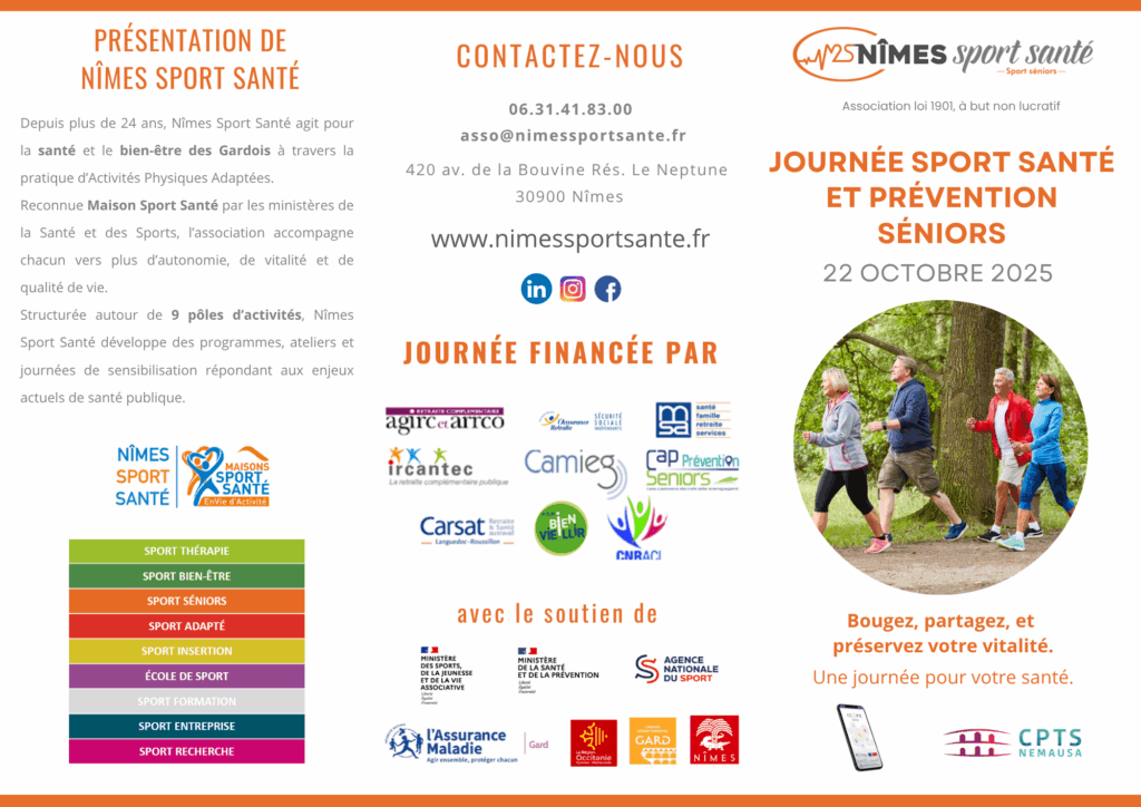 Nîmes Sport Santé, en partenariat avec la CPTS Nemausa, organise un tout nouvel événement dédié au bien-être et à la prévention des fragilités liées à l’âge.